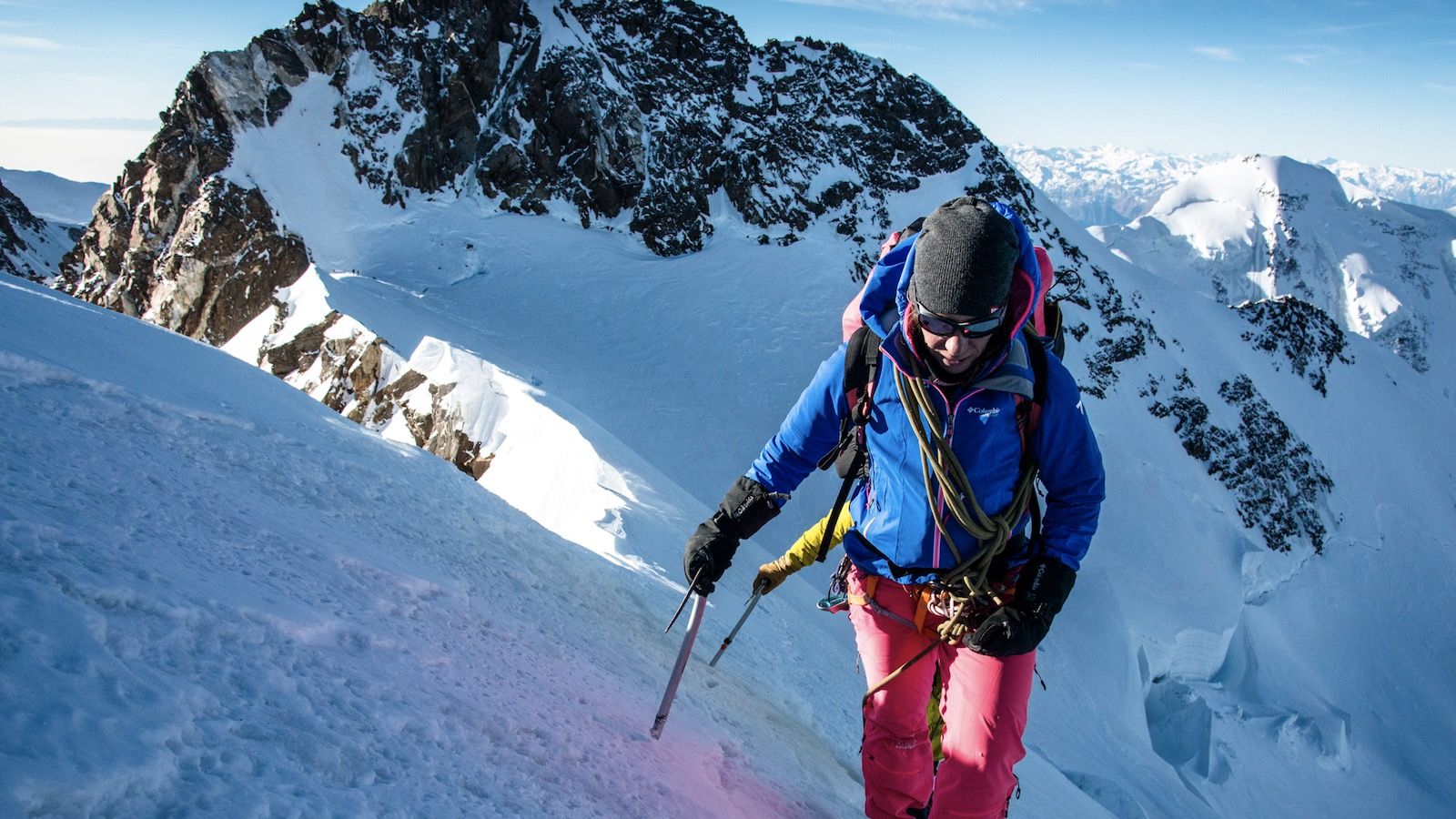 In the film 4634 - Perception - The Mountain Within - Géraldine makes us climb to 4634 meters of altitude at Monte Rosa. Up there, she explores the possibility of flying with her wing. Follow the latest technological developments of the bird woman that allows her today to hover faster and further. A new world opens up to her, beyond the limits she knew until then.