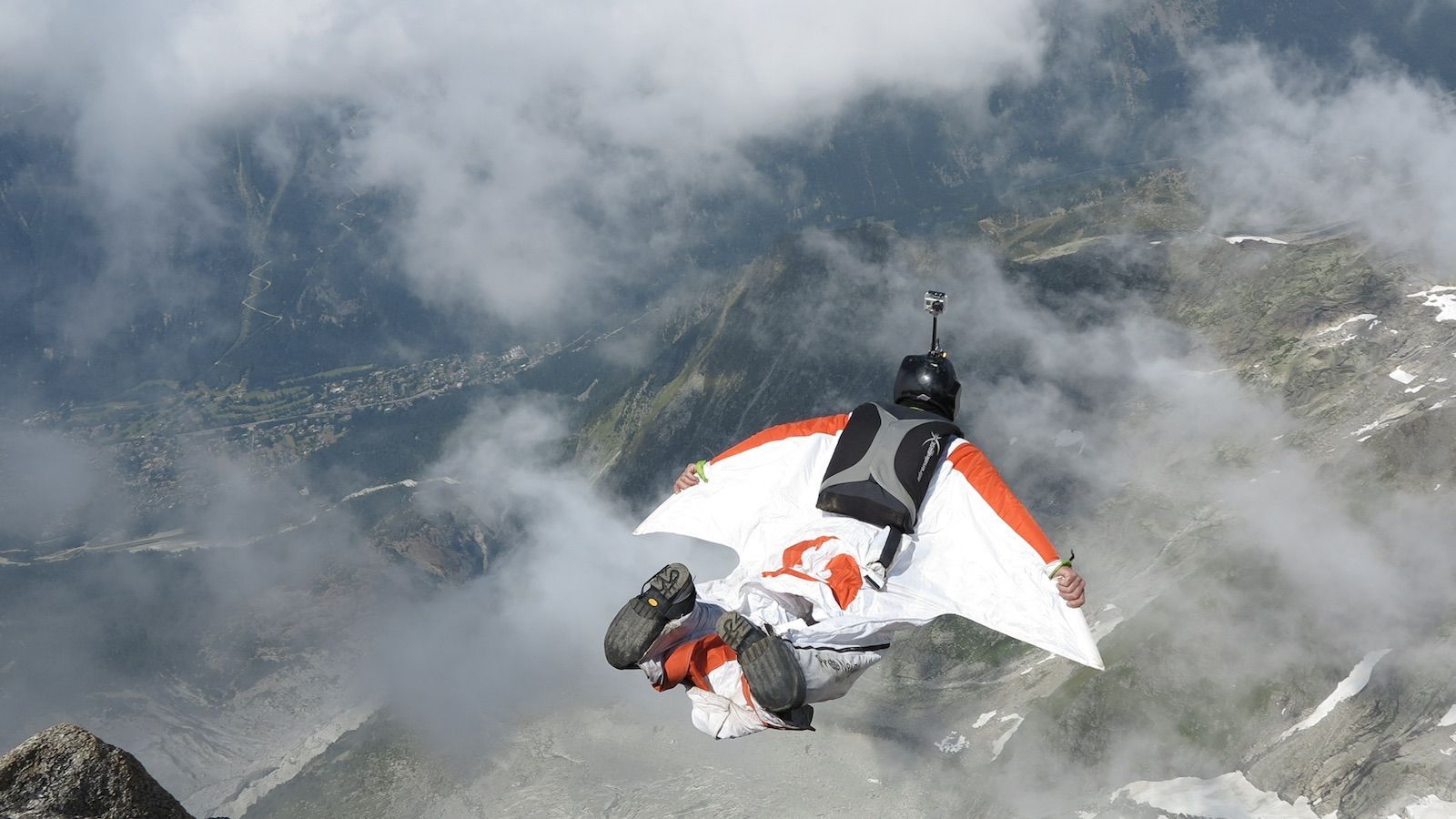 First jump in a Wingsuit from the historical Alpine symbol "Les Drus" facing the Mont-Blanc, achieved on Wednesday 25th July 2012.